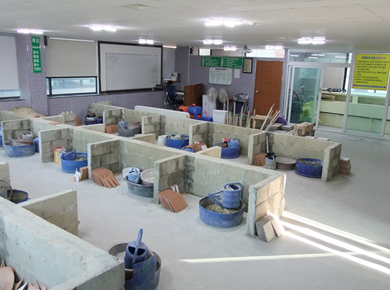 타일작업에 필요한 각 부분의 시공법을 이해하고 타일시공 실습에 앞서 타일공사 전반에 대하여 이해 할수 있도록 학습한다. 국내유일한 욕실리모델링 수업을 학습함으로 타일붙이기시공을 넘어 화장실 한칸 시공을 완성할수 있도록 위생기(변기, 세면대)설치와 악세사리(수건걸이, 화장지걸이 등) 설치방법을 배워 훈련생의 취,창업시 경쟁력을 높일수 있도록 하였다.